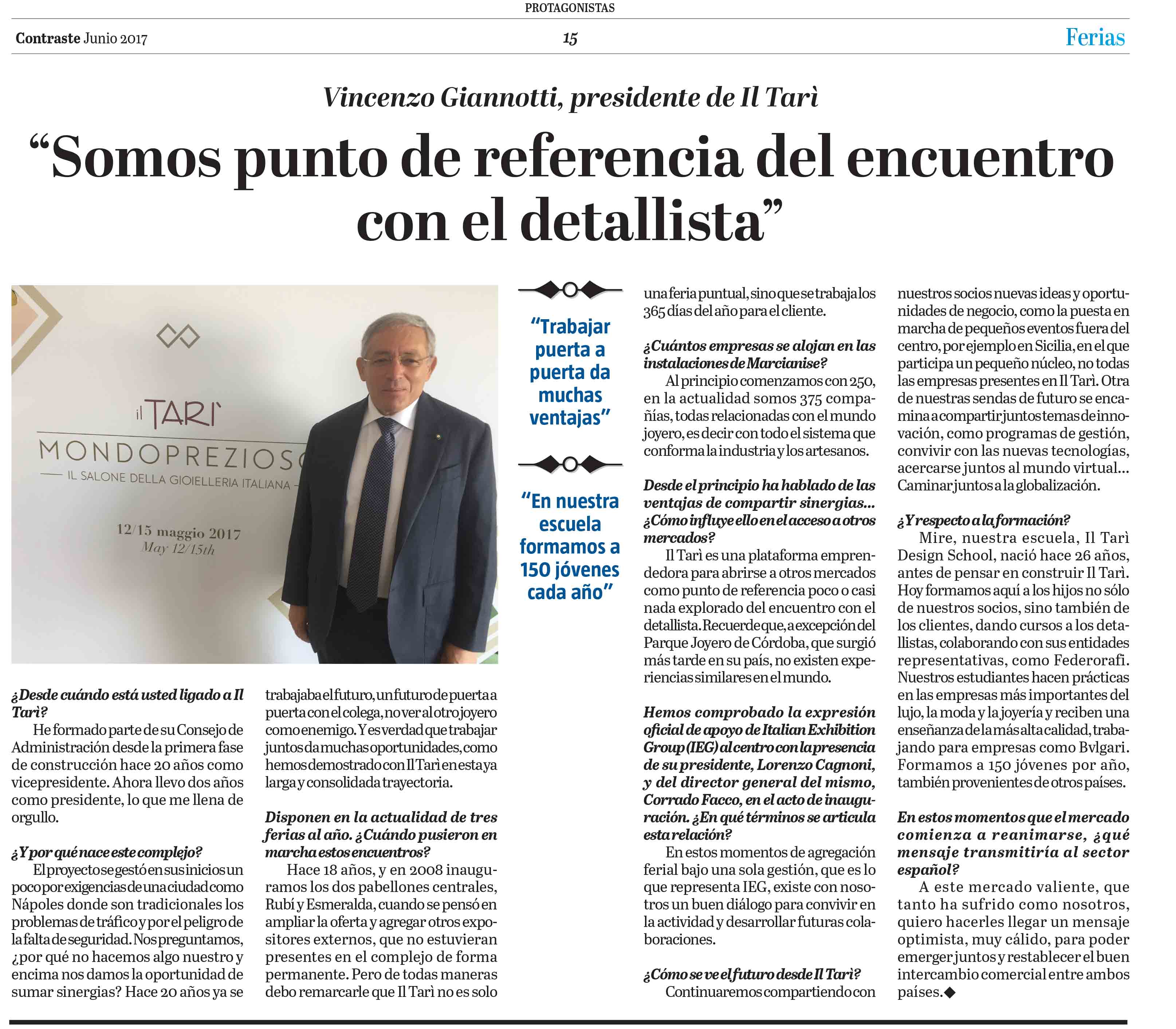Il Tarì è una piattaforma imprenditoriale che intende aprirsi agli altri mercati come punto di riferimento per l’incontro con i dettaglianti. Le ricordo che, fatta eccezione per il Parque Joyero di Cordoba, nato dopo il Tarì, non esistono realtà simili nel mondo.